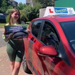 Driving test pass first time for Mia after taking driving lessons with instructor Helen Farnsworth.